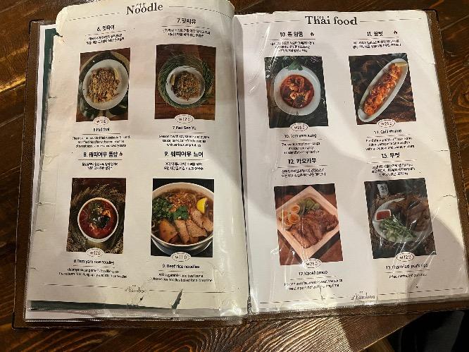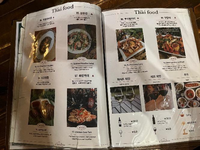 팟타이, 똠양꿈, 핏파오탈레, 뿌팟퐁커리 메뉴가