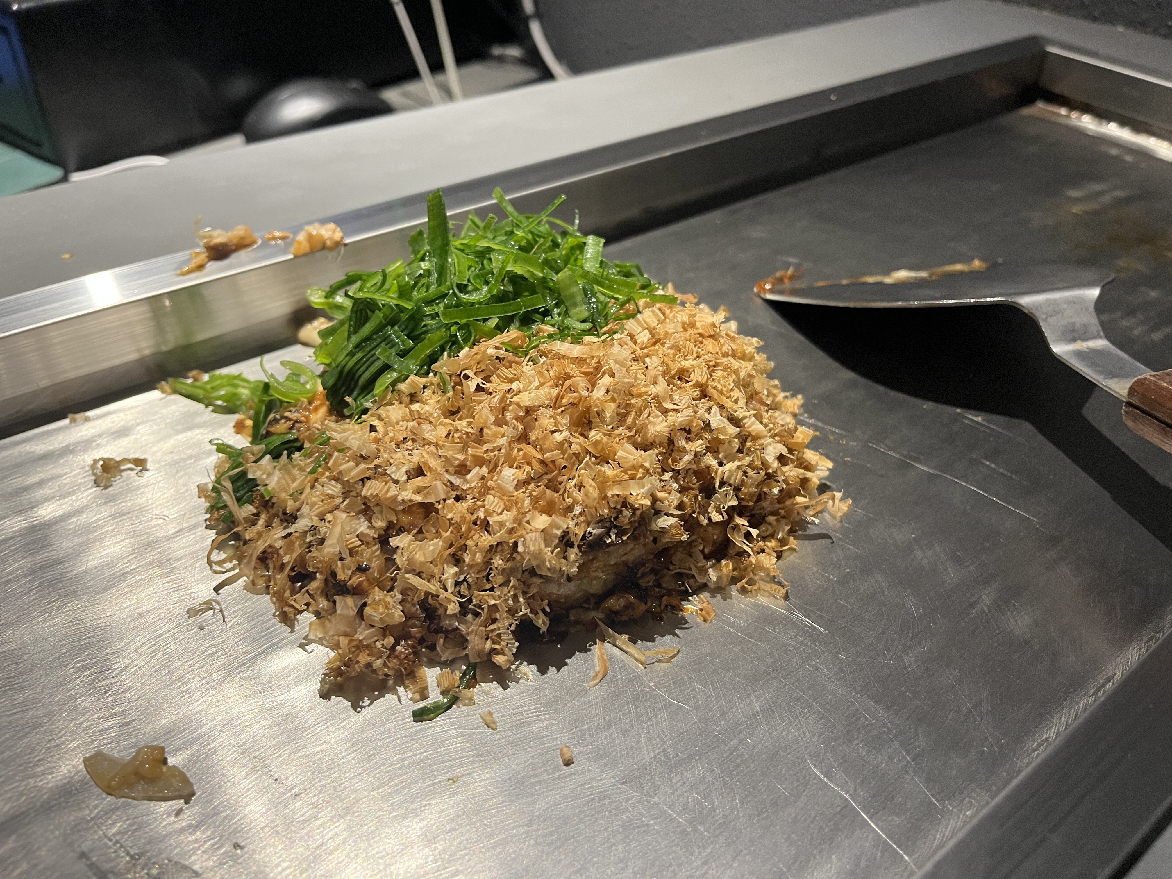 반죽에 가쓰오부시랑 대파를